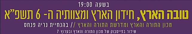 בזום, בפייסבוק ובערוץ היוטיוב של מכון התורה והארץ. למידע נוסף>>