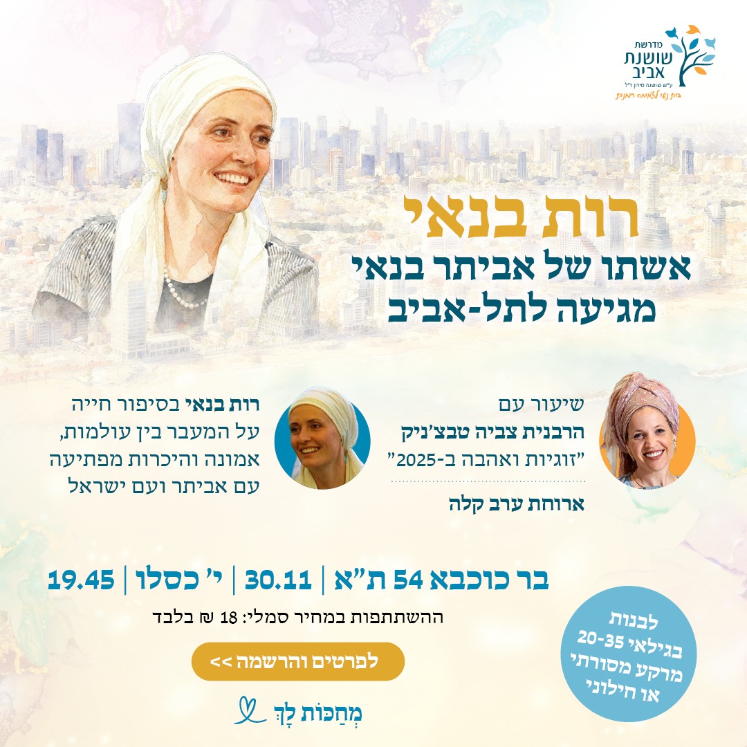 | | קהילה יקרה חודש טוב ומבורך, החודש עבר לנו מהר, הוא היה מלא עשייה ובעיקר מלא במשמעות. לא הכול היה קל, אבל דווקא בזמנים כאלה מתחדד הלב ומתחזקת האמונה. אצלנו בראש יהודי המשכנו לעשות את מה שאנחנו יודעים הכי טוב: לפתוח דלתות, לפתוח לבבות, ולתת לקהילה בית חי וחם ליהדות ולימוד תורה ממש במרכז תל אביב. | | | | ערב מרגש עם צביקה מור - מסע של כאב, אמונה ותקווה אי אפשר להישאר אדישים מול אדם שעבר את מה שצביקה עבר. במפגש עוצמתי וחשוף הוא שיתף אותנו במה שלא נאמר בחדשות. הוא דיבר על איתן, על התקווה שלא נשברה ועל האחריות שלנו לעמוד זה לצד זה. יצאנו משם בתחושה שעם ישראל יודע לקום, גם מהשברים הכי קשים ובעיקר, להיות ביחד ולהתמודד מול אויב אכזר בעוז ובביטחון, עם הרבה אמונה וללא פשרות, גם במצבים המורכבים ביותר. | | | | | | מסע נשי מעצים לקבר רחל אמנו יחד יצאנו, נשים עם לבבות פתוחים, לאמא, אמא רחל. מסע מרגש, שיעור מיוחד של מוריה זעירא על דמותה של רחל אמנו, תפילה של לילה ואינספור רגעים של התרוממות הפכו את המסע הזה לאחד היפים שהיו לנו השנה. מי שהייתה שם יודעת בדיוק: הדרך לרחל אמנו פוגשת את הנפש במקום הכי חשוף ואמיתי. תודה למי שבאה, מחכים לכולכן גם במפגש הבא! | | | | | | | שיעורים מחברים - נפש, רוח, נשמה גם החודש הבית שלנו היה מלא. שיעורים על עומק, זהות, פרשת שבוע, זוגיות, מחשבה יהודית, עבודת מידות וכמובן תורת הסוד… מפגשים בין אנשים שמחפשים לגדול. הדבר הזה שאנחנו קוראים לו "שגרה" הפך להיות עוגן של ממש. איך מישהו אמר לנו השבוע? בראש יהודי ה-"שגרה היא תפילה". ממש מרחב שכל יום עולה בקשה חדשה להיות יחד, להתקרב לה' יתברך, ולגדול בלימוד ובאהבת ה'. בעז"ה. | | | | | | | | | | אירוע מיוחד בשבוע הבא – רות בנאי במדרשה רות בנאי, אשתו של אביתר בנאי, מגיעה לשיחה פתוחה ומרגשת על מסע חיים, אמונה ומשמעות. יחד איתה תעביר הרבנית צביה טבצניק שיעור בנושא "זוגיות ואהבה ב 2025". האירוע מיועד לבנות צעירות מבית חילוני בגילאי 20 עד 35. יום ראשון ט כסלו (30.11) בשעה 19.45 בבר כוכבא 54 תל אביב | | | | | | נסיעה למערת המכפלה - חיבור לשורש מסע של חיבור לשורש שלנו, אבותינו, אמותינו, חוויה עוצמתית. פתחנו את המפגש על הדשא עם פק"ל קפה ואווירה מחזקת, ואז נכנסנו למערת המכפלה לתפילה מרוממת. משם המשכנו לסיור מרתק ברחבי חברון, לשמוע על ההיסטוריה ועל החיות היהודית שפועמת במקום הזה. זכינו לבקר בבית הכנסת "אברהם אבינו" שנחרב בפרעות תרפ״ט וברכנו "מציב גבול אלמנה" על מקום שהוקם לתחייה ממש מול עינינו. לאורך המסע כולנו הרגשנו את אותו חוט שממשיך למשוך אותנו קדימה כבר אלפי שנים. זה היה מפגש מרגש ועוצמתי שהזכיר לנו למה אנחנו פה ולאן אנחנו הולכים. | | | | אנחנו נכנסים לתקופה עמוסה, חנוכה, חורף, ואנחנו לא מאיטים. עוד שיעורים, עוד מפגשים, עוד תוכן, עוד תורה ולימוד מעמיק. תודה שאתם חלק מהמשפחה הזאת. בזכותכם יש משמעות לכל רגע, לכל מפגש, לכל חיוך.